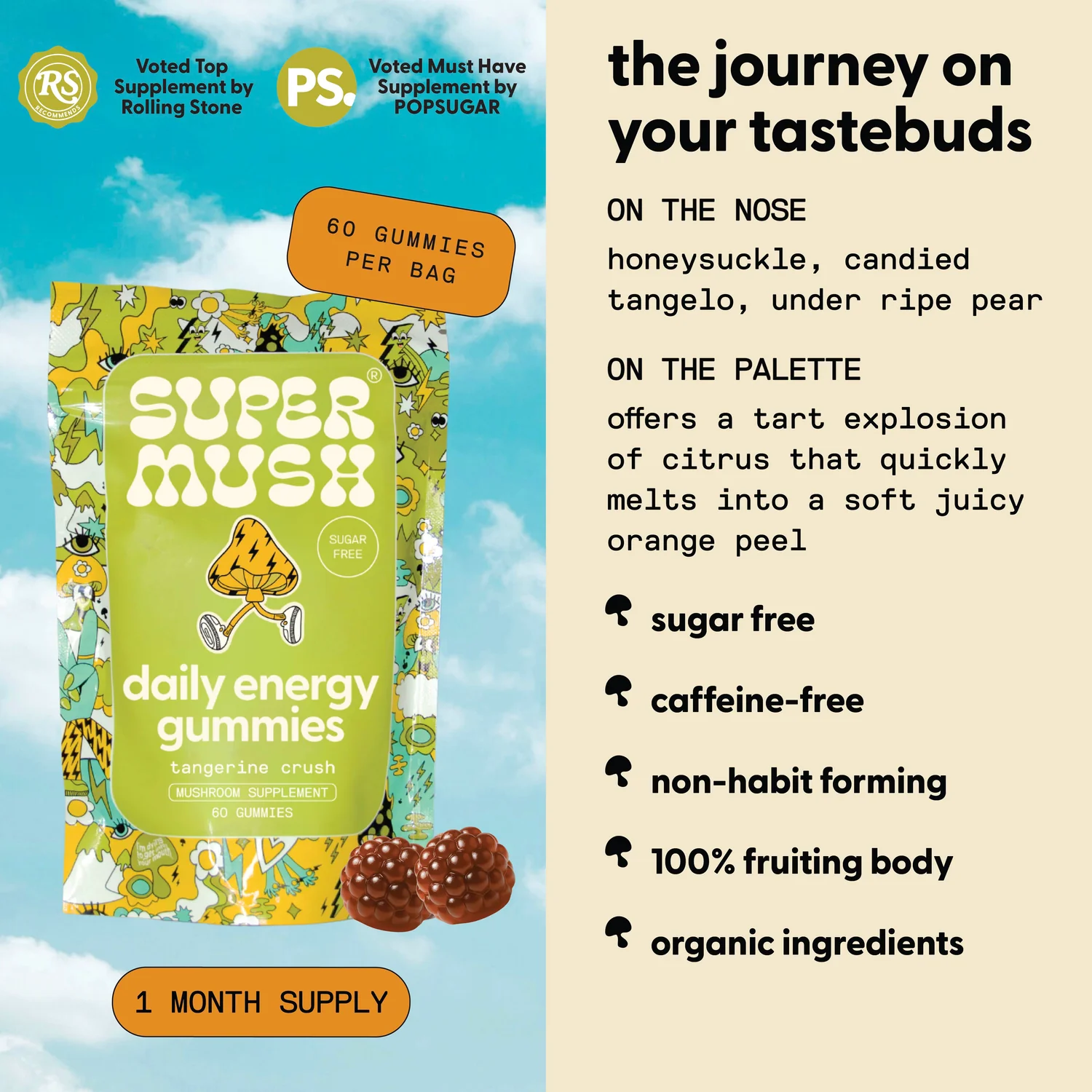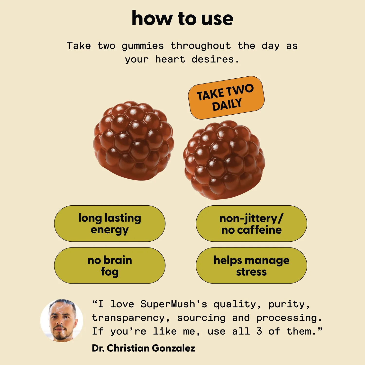 SuperMush Daily Energy Gummies – Natural Energy, Focus & Vitality