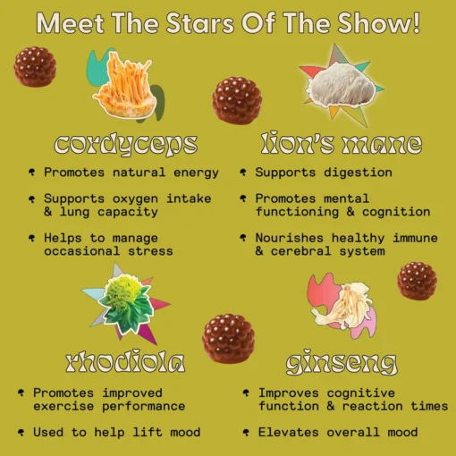 Unlike many energy boosters loaded with sugar, artificial sweeteners, or excessive caffeine, SuperMush Daily Energy Gummies provide: